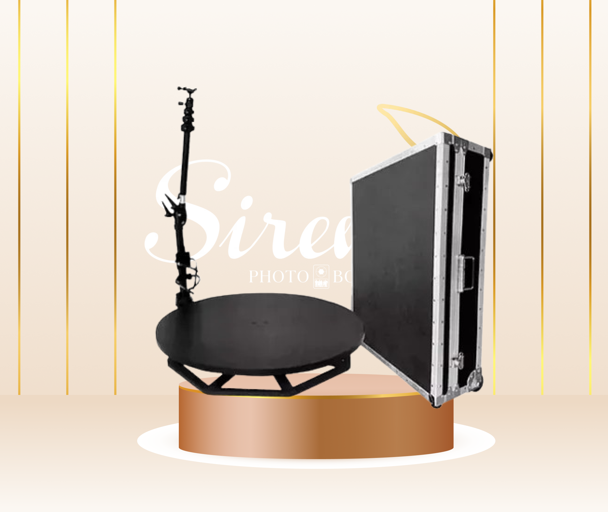 We typically integrate an 8’ x 8’ Backdrop for the Open Air Photobooth and suggest a floor area of the same size. The 360 Booth without backdrop takes up less space.